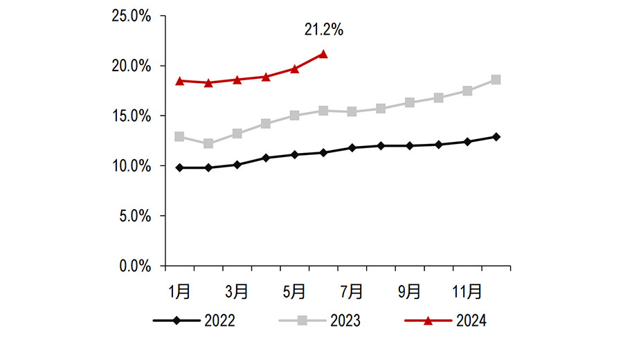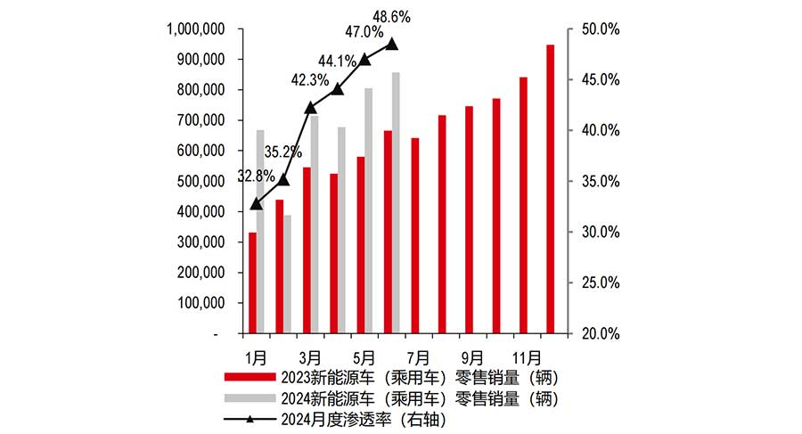 2024年6月新能源汽车渗透率为 49%