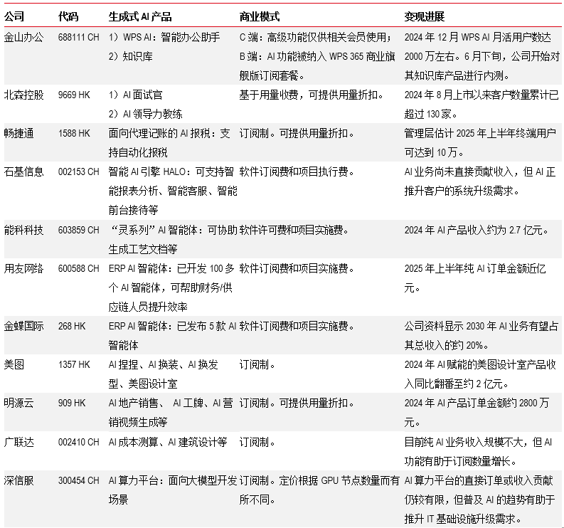 中国软件行业生成式AI变现案例