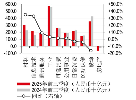 2025 年第三季度A股非金融公司盈利及增速(按板块)
